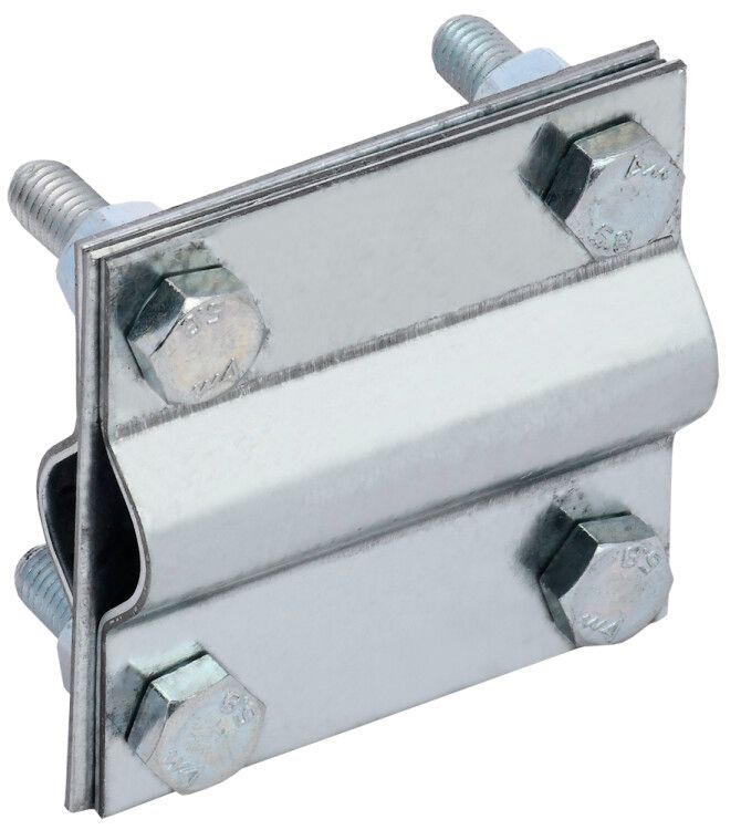 Зажим совместим с любыми стальными заземляющими стержнями диаметром 8–10 мм. Для монтажа требуется ключ или гаечный ключ подходящего размера. Установка выполняется путём вставки стержней в зажим и затяжки болтов до упора - контроль усилия не обязателен, но рекомендуется избежать перегрузки резьбы. Разделительная пластина уже встроена - не требует доп. компонентов.