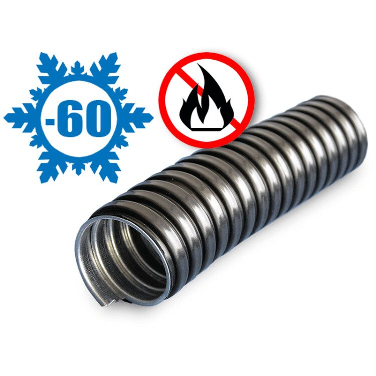 - При прокладке в земле или на открытом воздухе закрепляйте металлорукав в ПВХ изоляции МРПИ НГ морозостойкий d38мм 20м/упаковка черный УХЛ1 через каждые 1–1,5 м, чтобы избежать провисания.