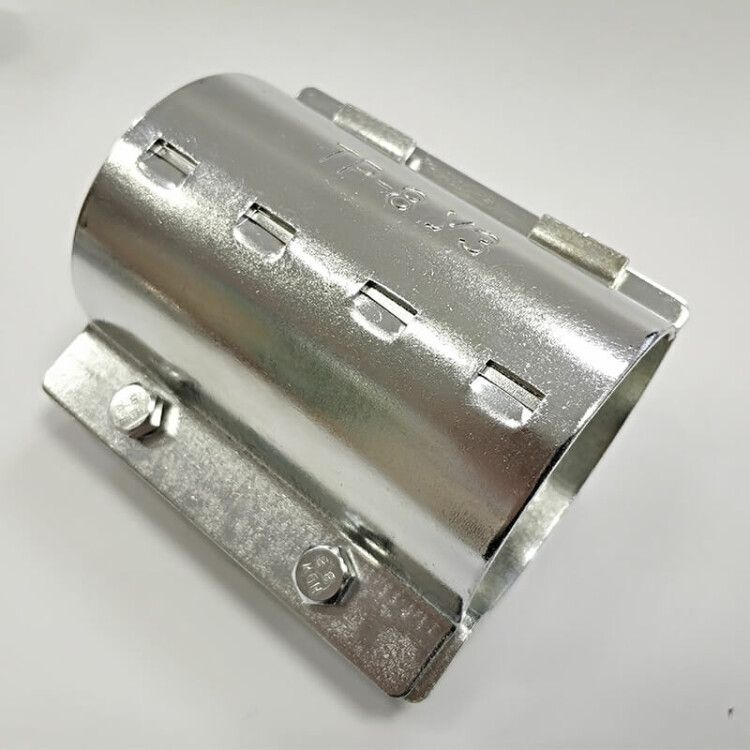 Муфта ТР-8 У3 - это закрытая трубная муфта из оцинкованной стали с маслостойкой резиновой прокладкой, предназначенная для надёжного соединения бесрезьбовых стальных труб и металлорукавов. Бренд ЗЭТАРУС и артикул zeta40915 указывают на серийное производство этой модели для промышленной автоматизации и энергетики.