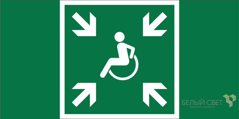 Знак безопасности BL-3015.E65 "Пункт (место) сбора МГН (безопасная зона МГН)" Белый свет a19569 BS