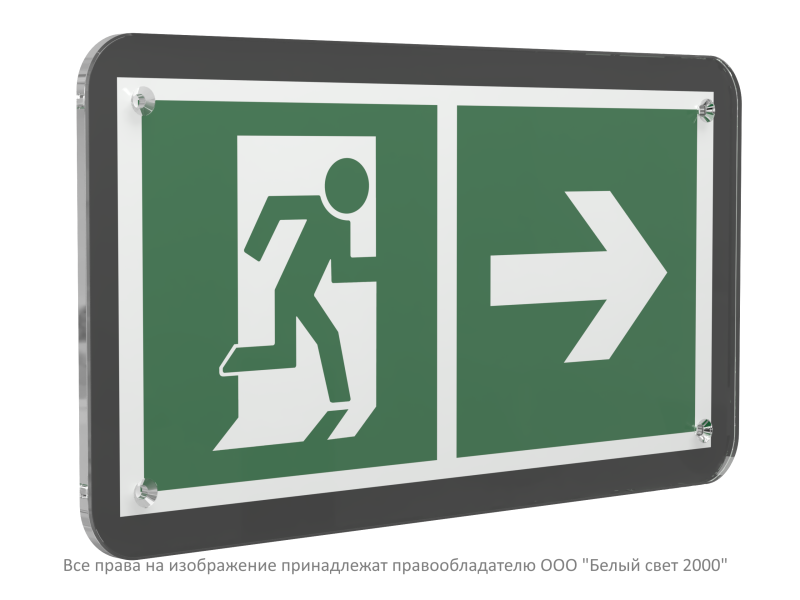 Знак безопасности PS-33186-Black.E35 "Направление к эвакуационному выходу направо" Белый свет a32978