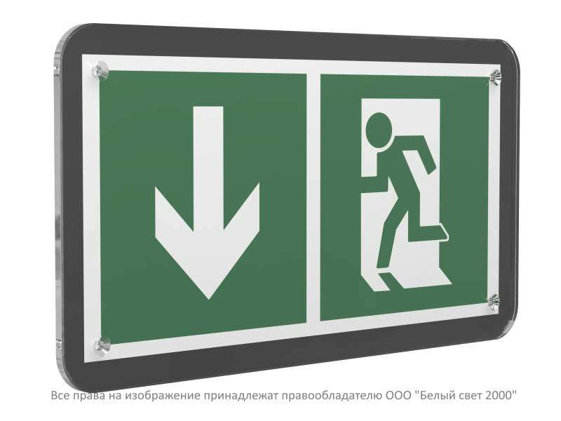 Знак безопасности PS-33186-Black.E40 "Указатель двери эвакуационного выхода (лев.)" Белый свет a32983