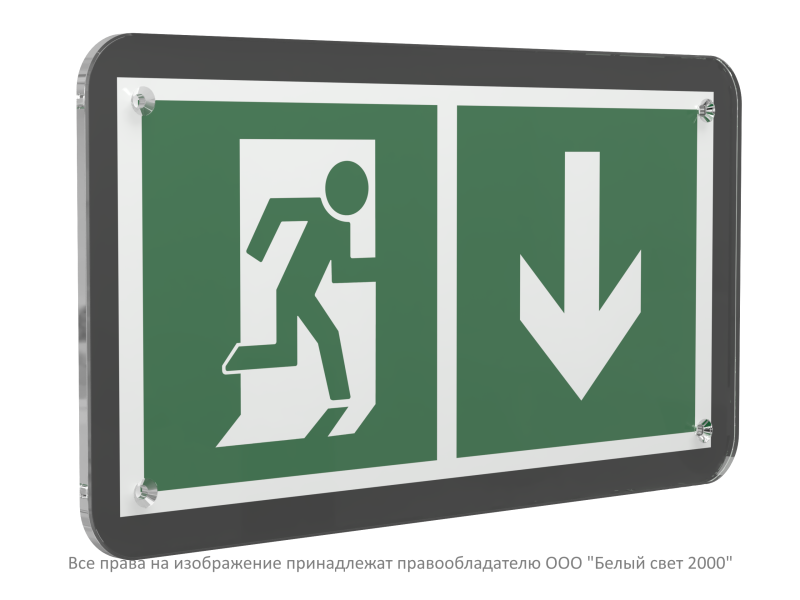 Знак безопасности PS-33186-Black.E39 "Указатель двери эвакуационного выхода (прав.)" Белый свет a32982