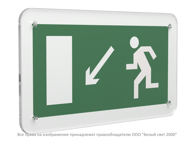 Знак безопасности PS-33186.E08 "Направление к эвакуационному выходу налево вниз" Белый свет a32864