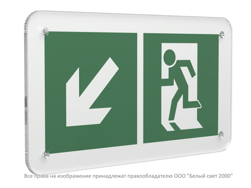 Знак безопасности PS-33186.E33 "Направление к эвакуационному выходу налево вниз" Белый свет a32876
