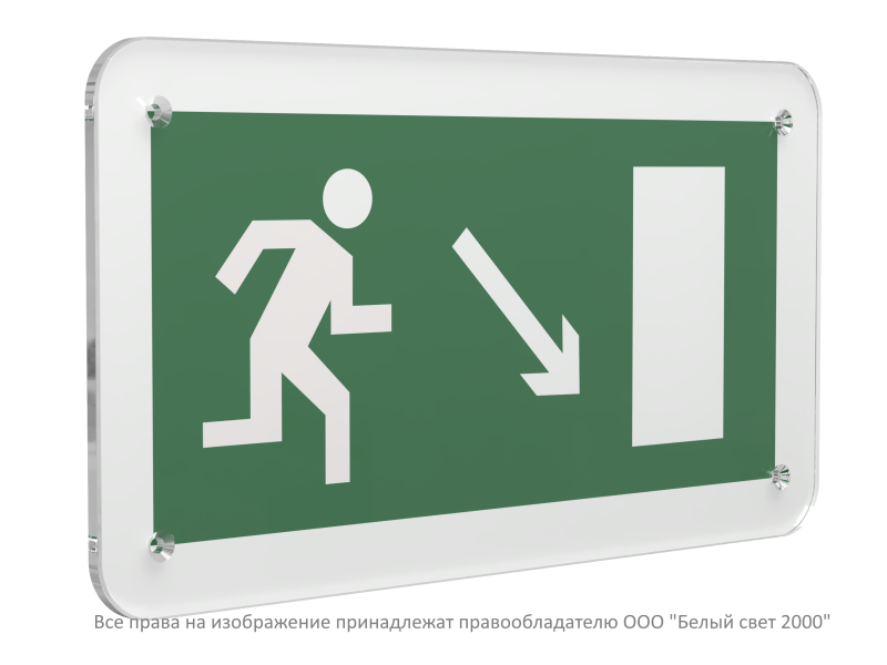 Знак безопасности PS-33186.E07 "Направление к эвакуационному выходу направо вниз" Белый свет a32863