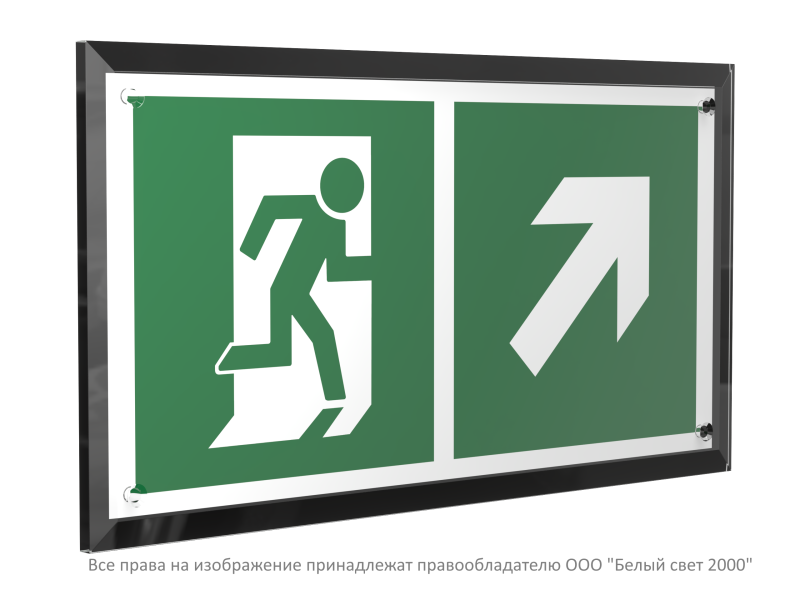 Знак безопасности PT-32178-Black.E37 "Напр. к эвакуац. выходу направо вверх " Белый свет a32720 BS