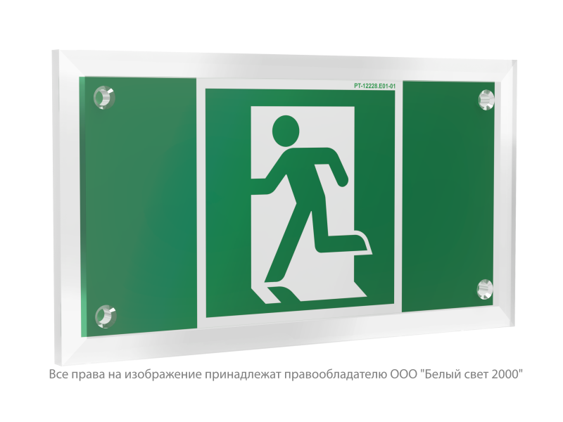 Знак безопасности PT-12228.E01-01 "Выход здесь (лев.)" Белый свет a20886