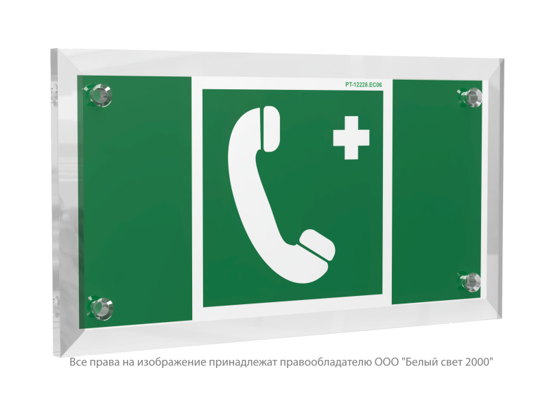 Знак безопасности PT-12228.EC06 "Телефон связи с мед. пунктом (скорой мед. помощью)" Белый свет a20945