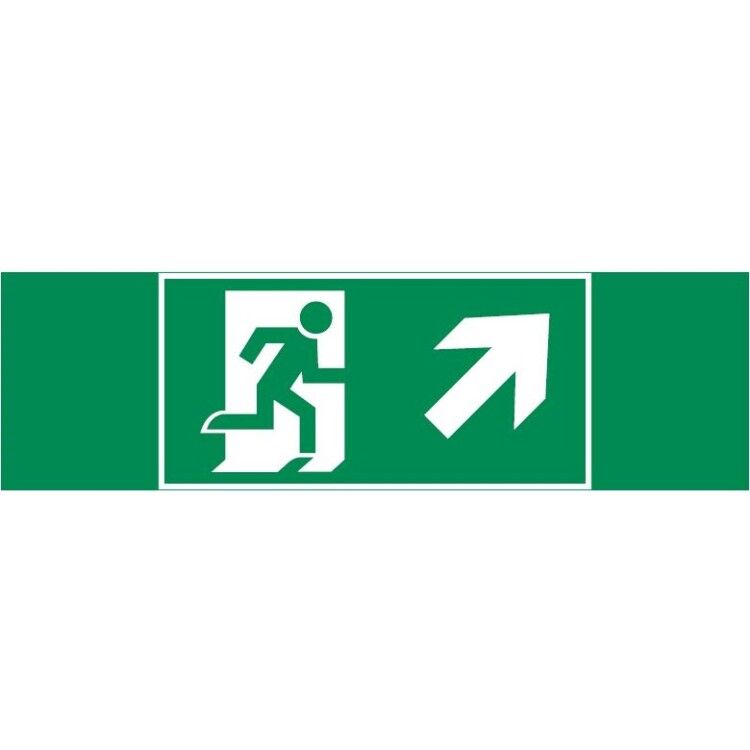 Пиктограмма (наклейка) "ФИГУРА / СТРЕЛКА ВПРАВО ВВЕРХ" 310х90мм для аварийно-эвакуационного светильника Basic IP65 используется для обозначения направления движения к безопасному выходу в зонах с ограниченной видимостью - например, в коридорах, эвакуационных проходах, тамбурах, подземных парковках. Устанавливается исключительно на аварийно-эвакуационные светильники серии Basic IP65. Подходит для помещений с постоянным пребыванием людей: офисы, школы, больницы, торговые центры, жилые дома.