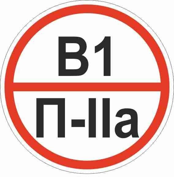 Изделие соответствует ГОСТ Р 12.4.026-2015 - государственному стандарту на знаки безопасности. Обозначение В1 П-IIа точно соответствует классификации помещений по взрывопожарной опасности, установленной в своде правил СП 12.13130. Знак обеспечивает четкую визуальную сигнализацию, снижающую риск человеческой ошибки.