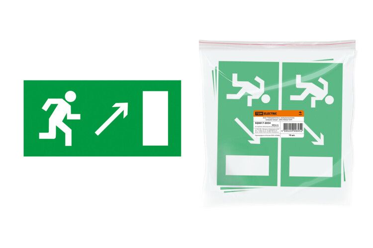 Знак направление к эвакуационному выходу направо вверх 200х100 мм от TDM ELECTRIC - самоклеящийся информационный элемент для обозначения пути эвакуации в помещениях. Артикул sq0817-0054 предназначен для быстрого монтажа на вертикальные поверхности и соответствует требованиям безопасности при эвакуации.