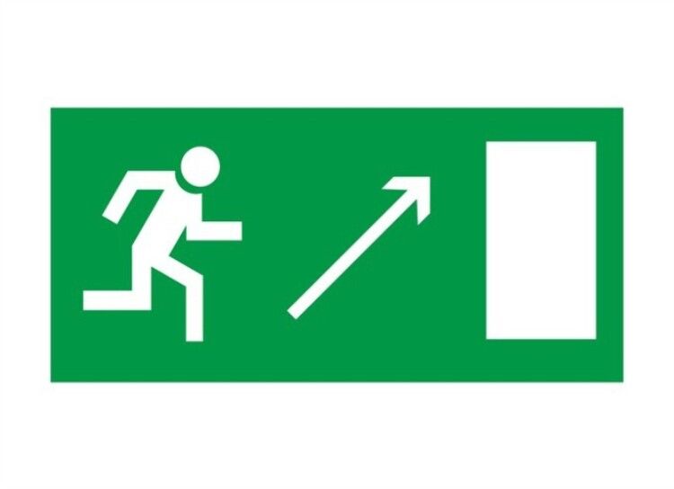 Знак направление к эвакуационному выходу направо вверх 200х100 мм используется для визуального указания направления движения к ближайшему эвакуационному выходу. Применяется в зданиях с высокой проходимостью: офисах, торговых центрах, больницах, школах, производственных помещениях. Обеспечивает четкую ориентацию людей во время аварийной ситуации, особенно когда основной путь эвакуации требует поворота вправо и вверх - например, к лестнице или эскалатору.
