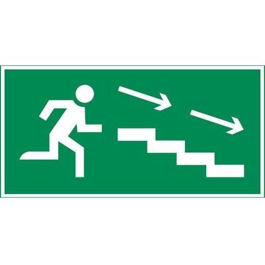 Пиктограмма «ПО ЛЕСТИЦЕ ВНИЗ ВПРАВО» 400×200 мм для аварийно-эвакуационного светильника Vault VARTON используется для обозначения пути выхода из здания через лестницу, расположенную справа и вниз. Применяется в помещениях с многоуровневой планировкой: офисах, жилых домах, торговых центрах, больницах, школах и других объектах, где требуется организация безопасной эвакуации.