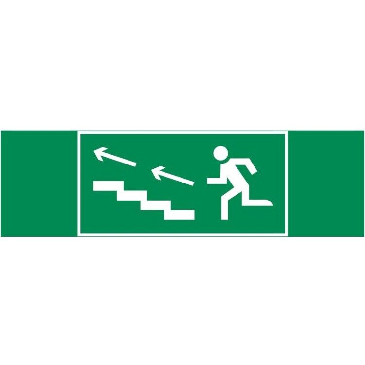 Пиктограмма используется в системах аварийного освещения для визуального ориентирования людей во время эвакуации. Указывает точное направление движения - вверх по лестнице, расположенную слева. Подходит для установки на аварийно-эвакуационные светильники типа Basic IP65 в зданиях общественного, административного и промышленного назначения: офисах, школах, больницах, торговых центрах, парковках и других местах с высокой проходимостью.