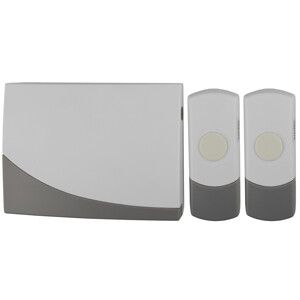 Звонок дверной беспроводной на батарейках 2 мелодии-отдельно для каждой кнопки 100м IP44 бело-серый 3АА/А23 C91-2 - Б0018998 ЭРА