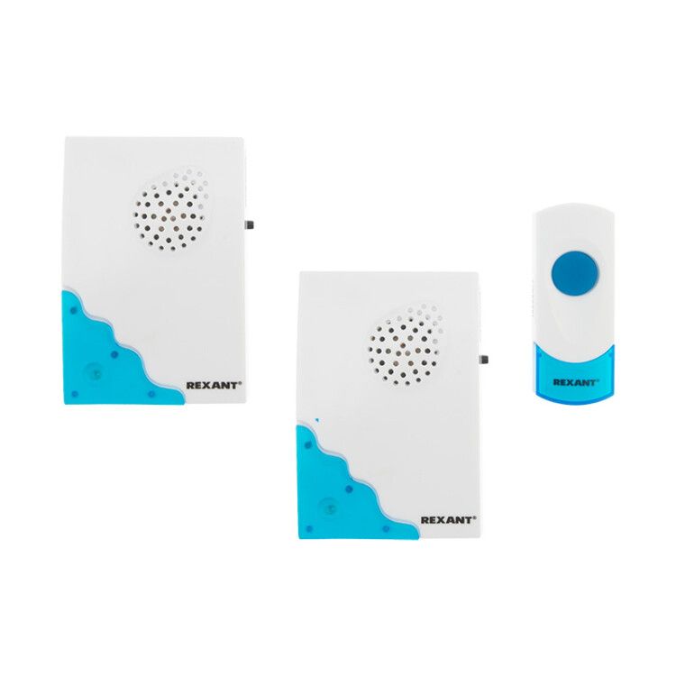 Звонок беспроводной дверной с двумя вызывными панелями 32 мелодии 100м кнопка IP44 белый/синий RX-5 - 73-0050 MEET