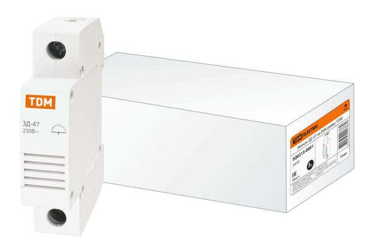 Звонок ЗД-47 на DIN-рейку от TDM ELECTRIC выполнен из пластика, не поддерживающего горение, что обеспечивает безопасность использования. Упаковка содержит 12 штук звонков.