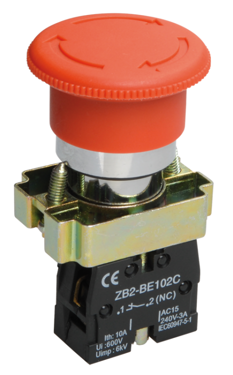 Устройства экстренного отключения оборудования с грибовидным толкателем - используются в промышленности, энергетике, станках и системах безопасности. При нажатии происходит принудительная остановка процесса.