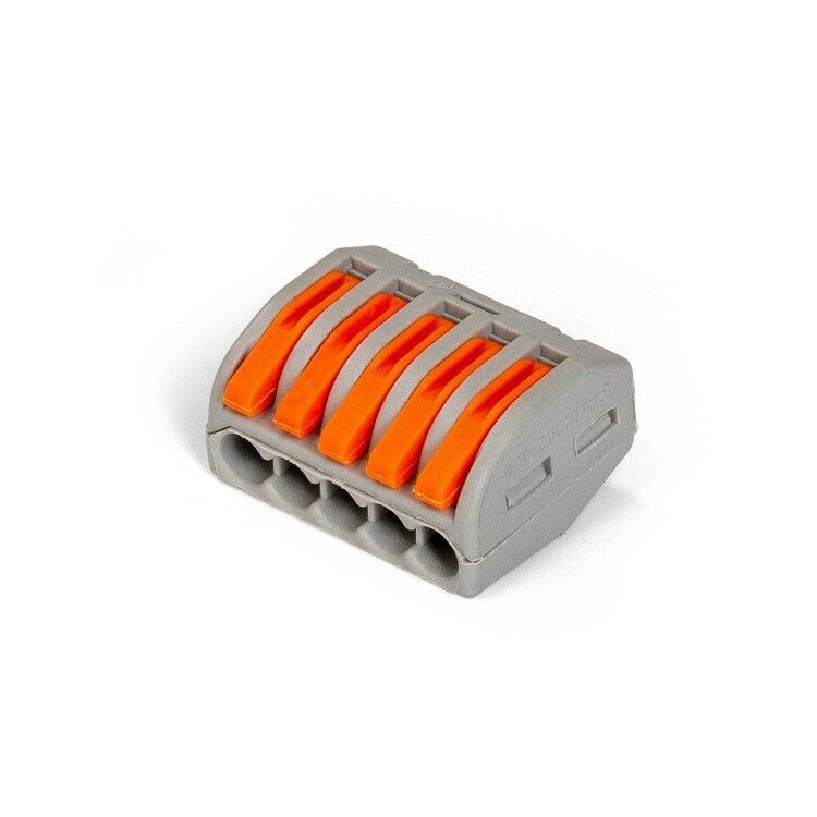 Компактные клеммы с рычажковым механизмом - обеспечивают надежный прижим провода, особенно эффективны для многожильных проводников. Рычаг упрощает монтаж и демонтаж, что актуально при временных подключениях или ремонте. Часть моделей имеет прозрачный корпус и контрольные отверстия для измерения напряжения без разборки. Работают с проводами от 0,2 до 4 мм кв.. Подходят для внутреннего монтажа, где важна скорость сборки и доступность переподключения.