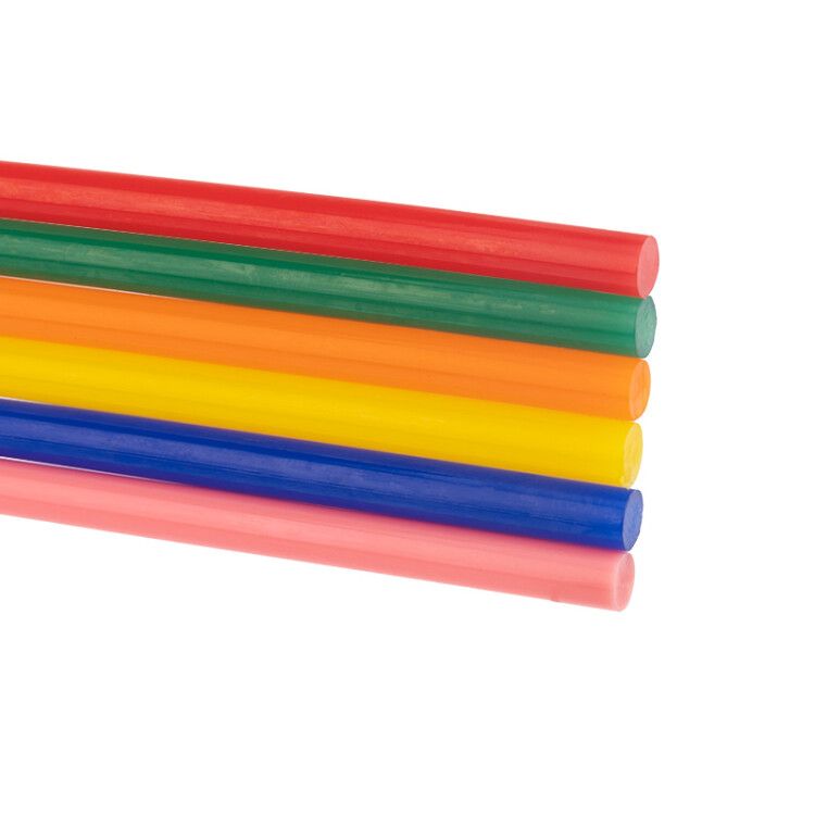 - Материал: все представленные стержни изготовлены из этиленвинилацетата (EVA), который быстро затвердевает, прочен после остывания и безопасен при нагреве.